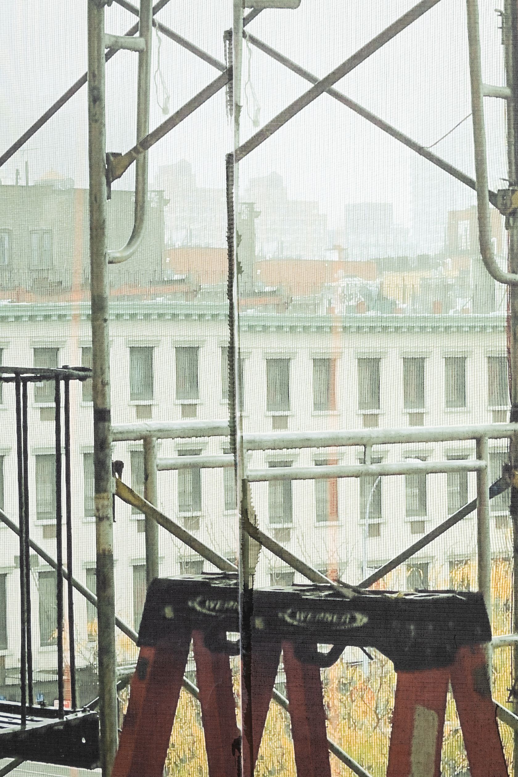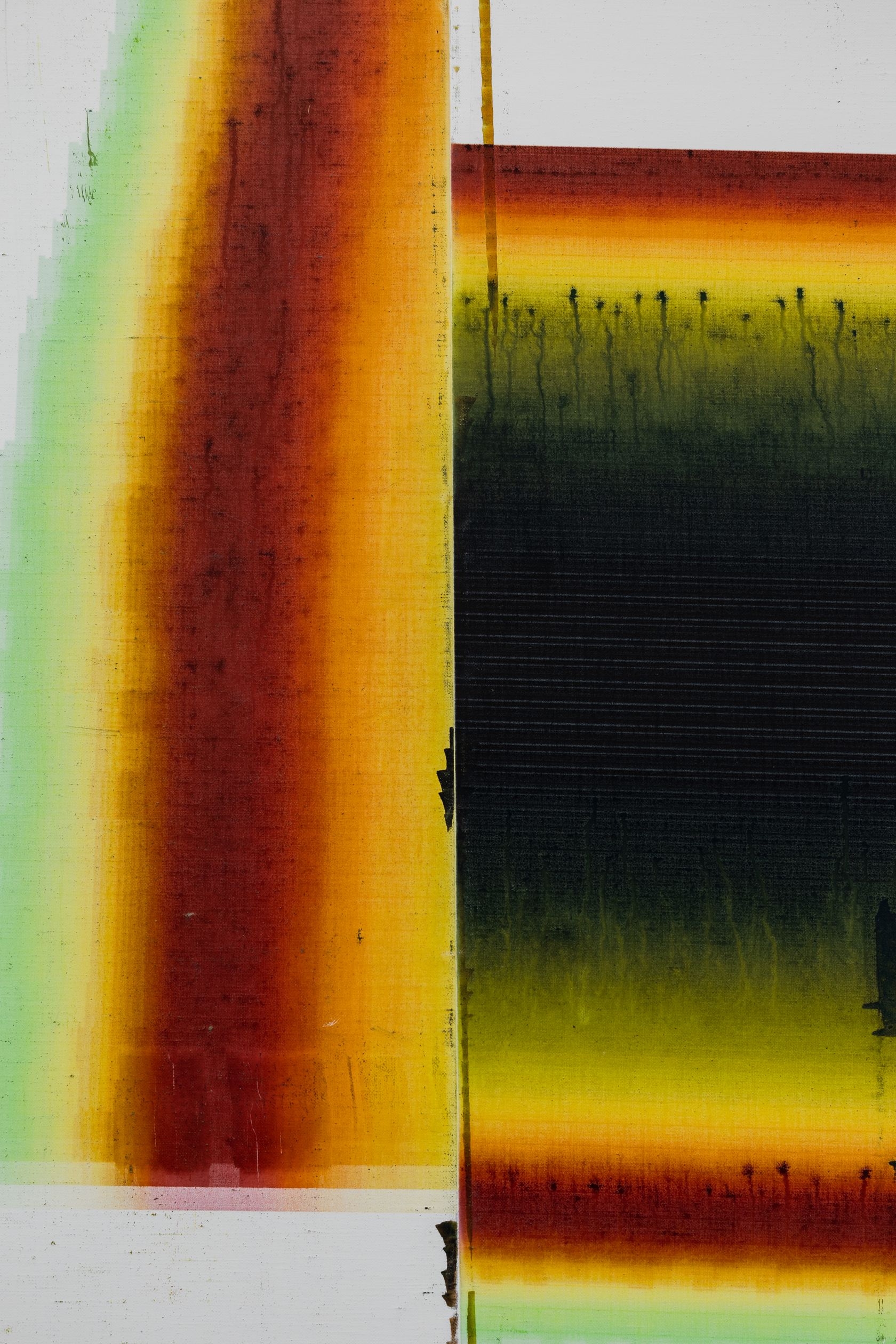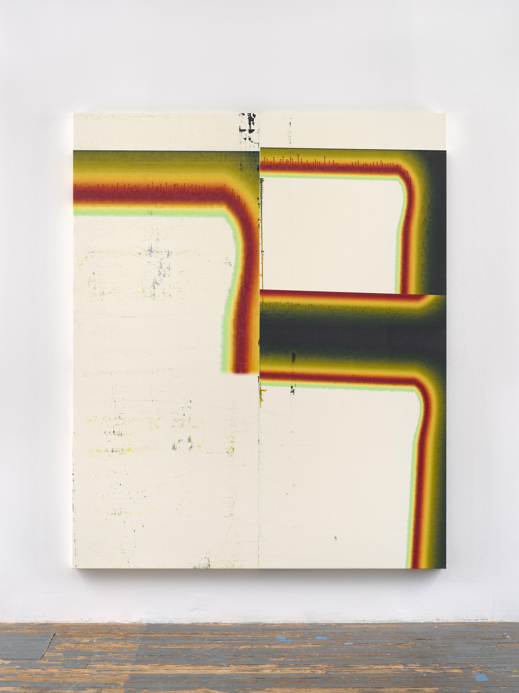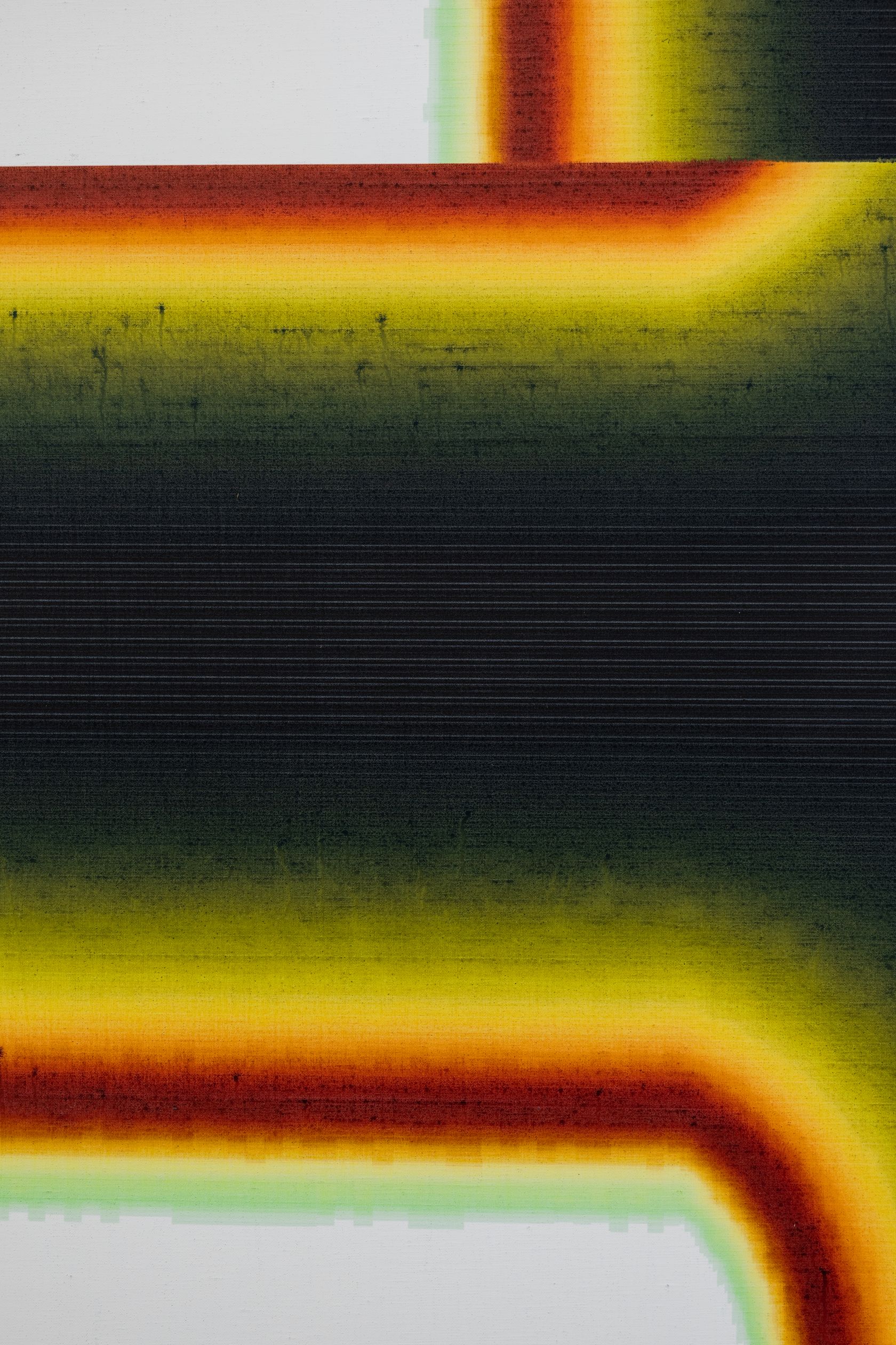 在他的最新系列中,盖顿以手机中的快拍,包括晾在地板上的画作,工作室的内外的景色,以及屏幕截图以及放大的像素图,来强调绘画与摄影之间的相互影响和作用。