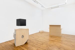 展览中,观看路线的作品安排,反映了艺术家工作室的特殊语境,工作室既是他的空间,也是艺术学校的空间,这点反映了海默·佐伯尼格重视教学的理念,认为它既是一种经验,也是一个场所。对他来说,艺术学校并不是一个产生知识的地方,而是一个生产物质性、事物混合创新、让形式无法事先被定义之处。一个看似不起眼的纸板建筑模型《无题》(1981)放在一张普通的黑色桌子《无题》(1983)上,见证了他在应用艺术领域学习时的岁月,当时他正在打磨一种介于雕塑、舞台设计和建筑之间的语言。造型或制作模型,加入了创造自主形式的目标,简化到了最基本的表达。这些无人居住的、剥离的形式,展现了一种简化的激进主义,一种壮观的反戏剧性。