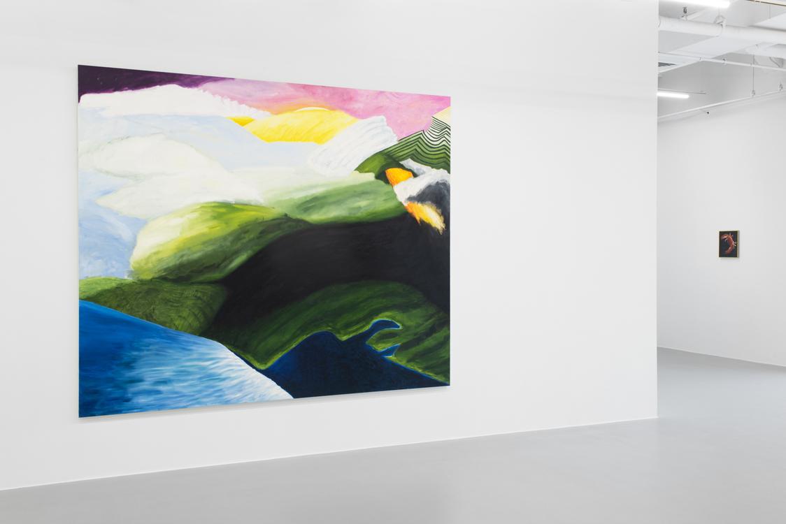 一组较小尺寸的作品在世俗和大气之间交替,努力使日常景观充满情感,精神性和超凡脱俗之感。邱奇曼再次显示出他们对超越我们所看到的事物的兴趣,同时接受我们所看到的方式,它是我们所拥有的债务和礼物的证明。图片的增加指向哲学:詹姆斯·特瑞尔(James Turrell)作品的超维度渲染与感知游戏,一排直立的柠檬上的紧凑作物使它们变得奇怪而奇妙。万事达卡的标志,一个邱奇曼以前合作过的形象,无法从它所赋予的资本、债务和贪婪的系统中移除,但在这里,它似乎正在走向另一种存在,深蓝色的忧郁和不祥,而覆盖的斑点则预示着星际转换的旅程。