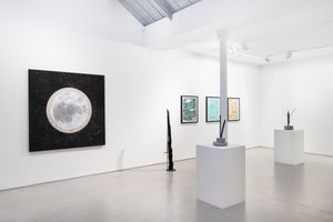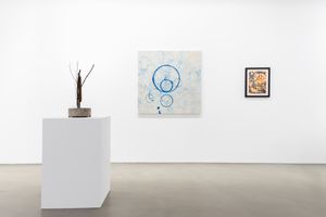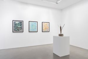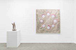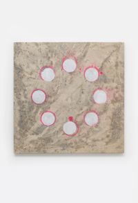 图阿松从纸湿拓技术中获得灵感,包括用漂浮在水面上的颜料来创造图案,在画布和纸上的一系列作品中记录了水通过颜色的运动。在这里,颜料被视为雕塑元素,在空间上与环境相互作用。此外,展览中还呈现了一系列喷泉微缩模型,它们由树枝和钢制成,被囚禁在混凝土中,结合了野兽派结构和自然元素,提供了一种形成中和石化状态的雕塑。