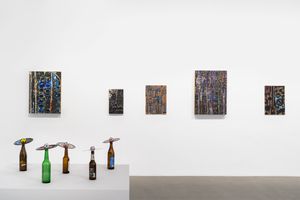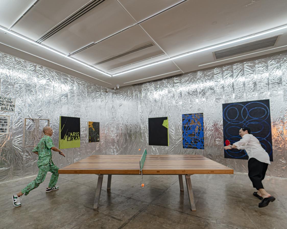 Amateur de musique et passionné par des figures comme Frank Zappa, célèbre pour ses improvisations, Udomsak Krisanamis crée lui aussi avec spontanéité et ressenti. Il revendique une sensibilité romantique, nourrie par les chansons emblématiques du rock et de la pop américaine. C’est naturellement qu’il réalise ses œuvres sans prévoir à l’avance, en faisant ce qu’il aime, jusqu’à ce que celles-ci fassent sens pour lui, redonnant de l’importance à la beauté formelle. En apportant ses références personnelles et ses passions dans l’exposition, l’artiste nous propose de découvrir sa personnalité et nous partage les plaisirs de son quotidien. Les titres de ses œuvres et expositions, tout comme le choix de vinyles présents dans l’espace, font référence à des chansons ou des films issus de la culture populaire, tissant ainsi un pont entre ses influences thaïlandaises et occidentales. Par cette approche, il réaffirme l’abstraction comme un langage universel.